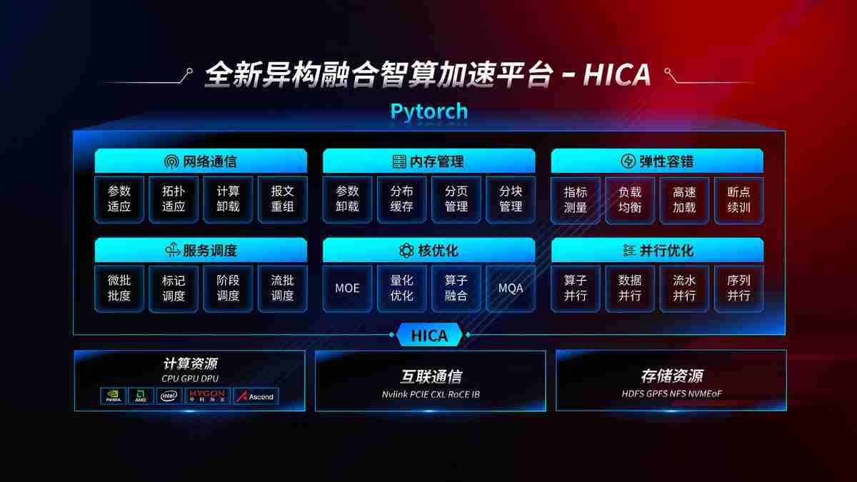 通过自研的服务层、、、、中间适配层、、、以及调度编排算法,,采用数据并行、、、模型并行等多种并行方式,,把并行计算任务进行有效的分解,,使其分别由相应的软件栈和算力资源来承接。。。当GPU资源变化,,,,HICA可以实时动态调度计算子任务并调整模型拓扑和架构,,,,以充分聚合各种算力资源。。。。